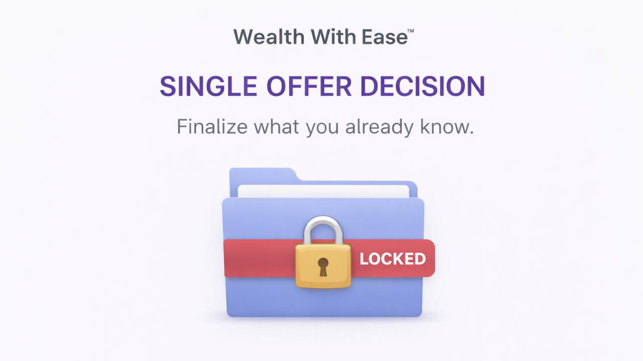This gives you access to the Wealth With Easeā„¢ Single Offer Decision Lock: A private GPT that finalizes your sellable offer with scope, pricing, delivery, and execution. No coaching, no revisions, no circling.